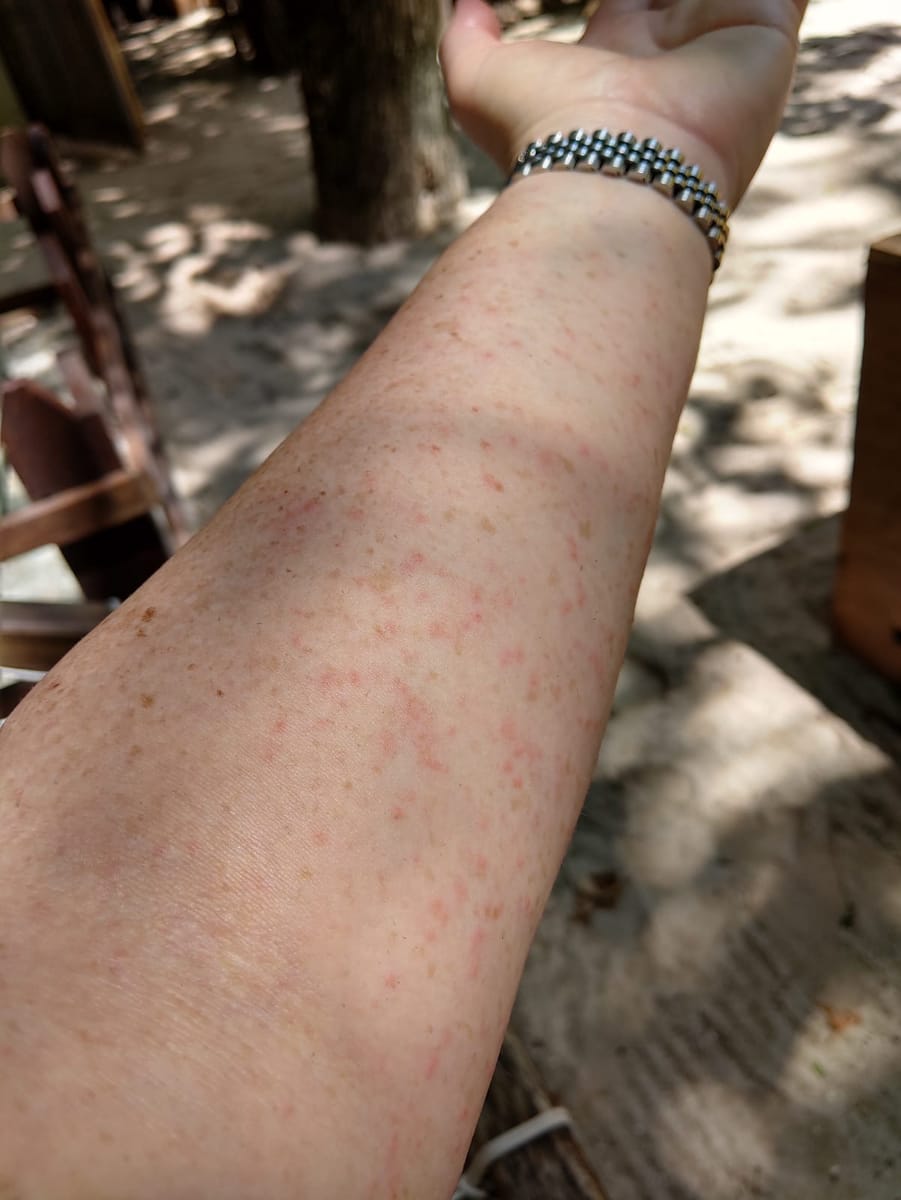 I already had a few areas where these nasty little creepie crawlies had “got” me, but after the storm there were EVERYWHERE!!! Hence our first job being to rid the centre of them, which probably took about two hours. Finally we were rid of the vast majority of them, and we could get on wound care.
