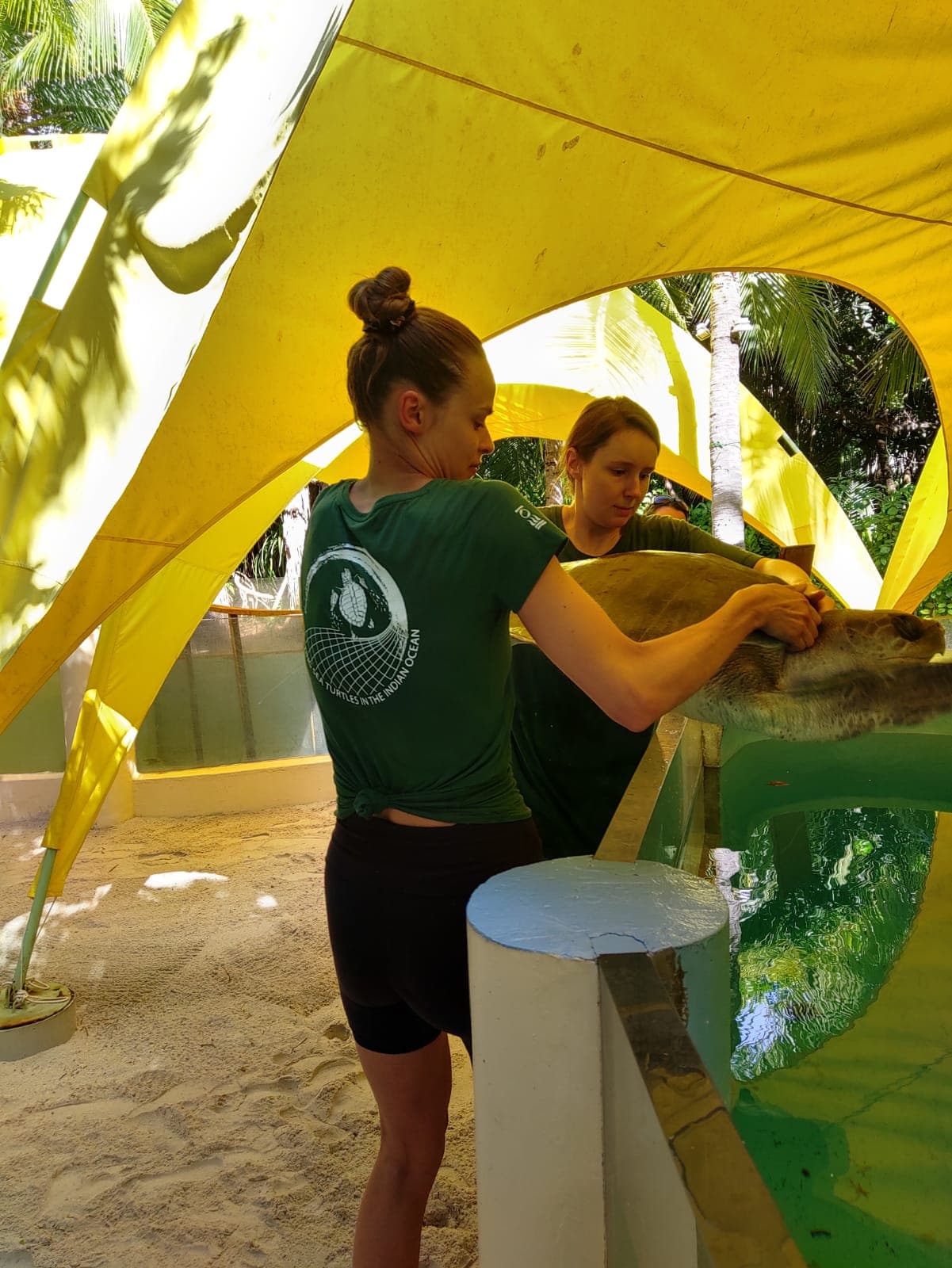 Wanting to get involved, Birgit was not afraid to get busy, and started off with a turtle spa for Honu.