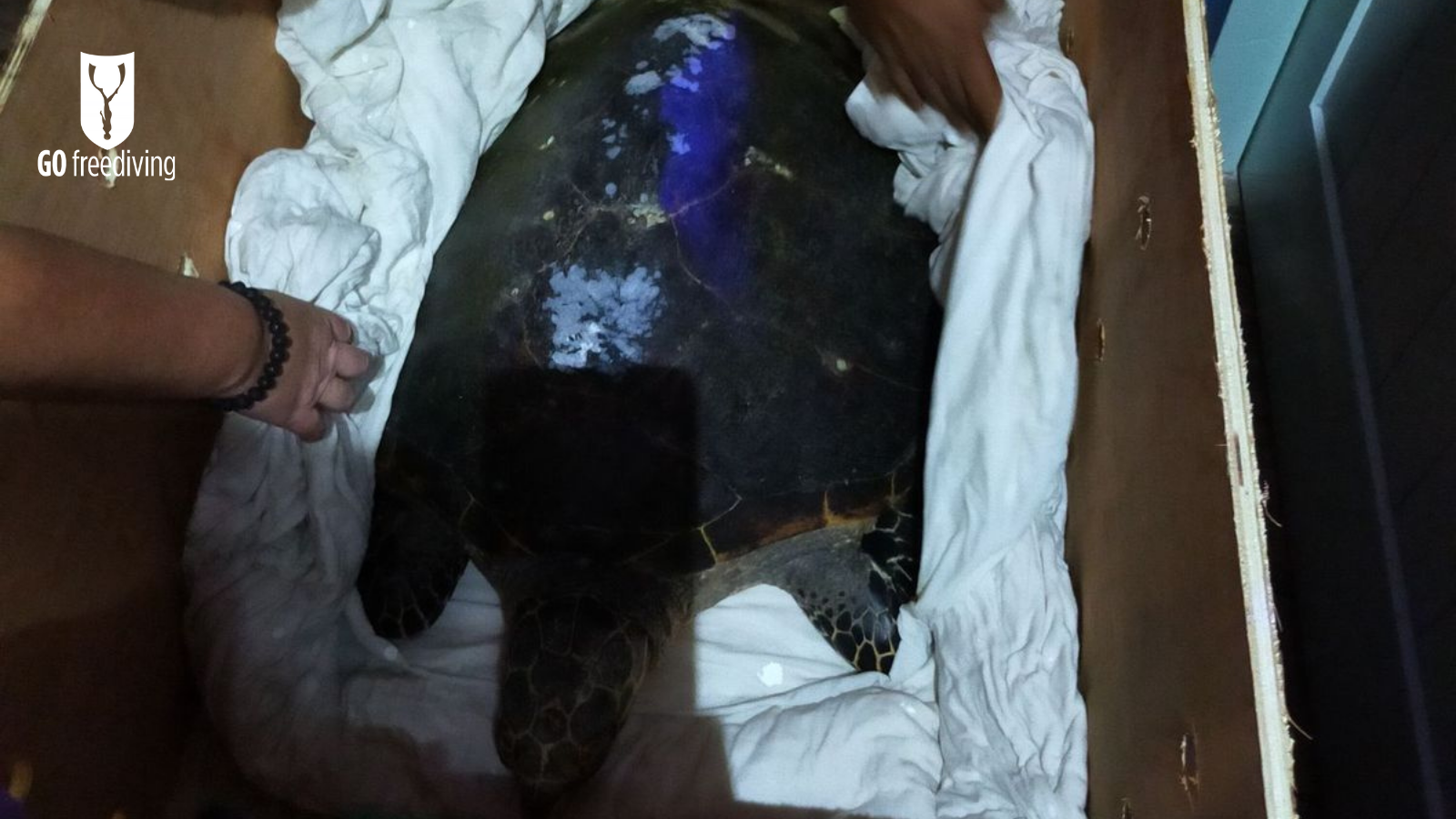 In December 2020, Go Freediving Instructors Emma Farrell and Pash Baker had an incredible opportunity to save a male Hawksbill Turtle.